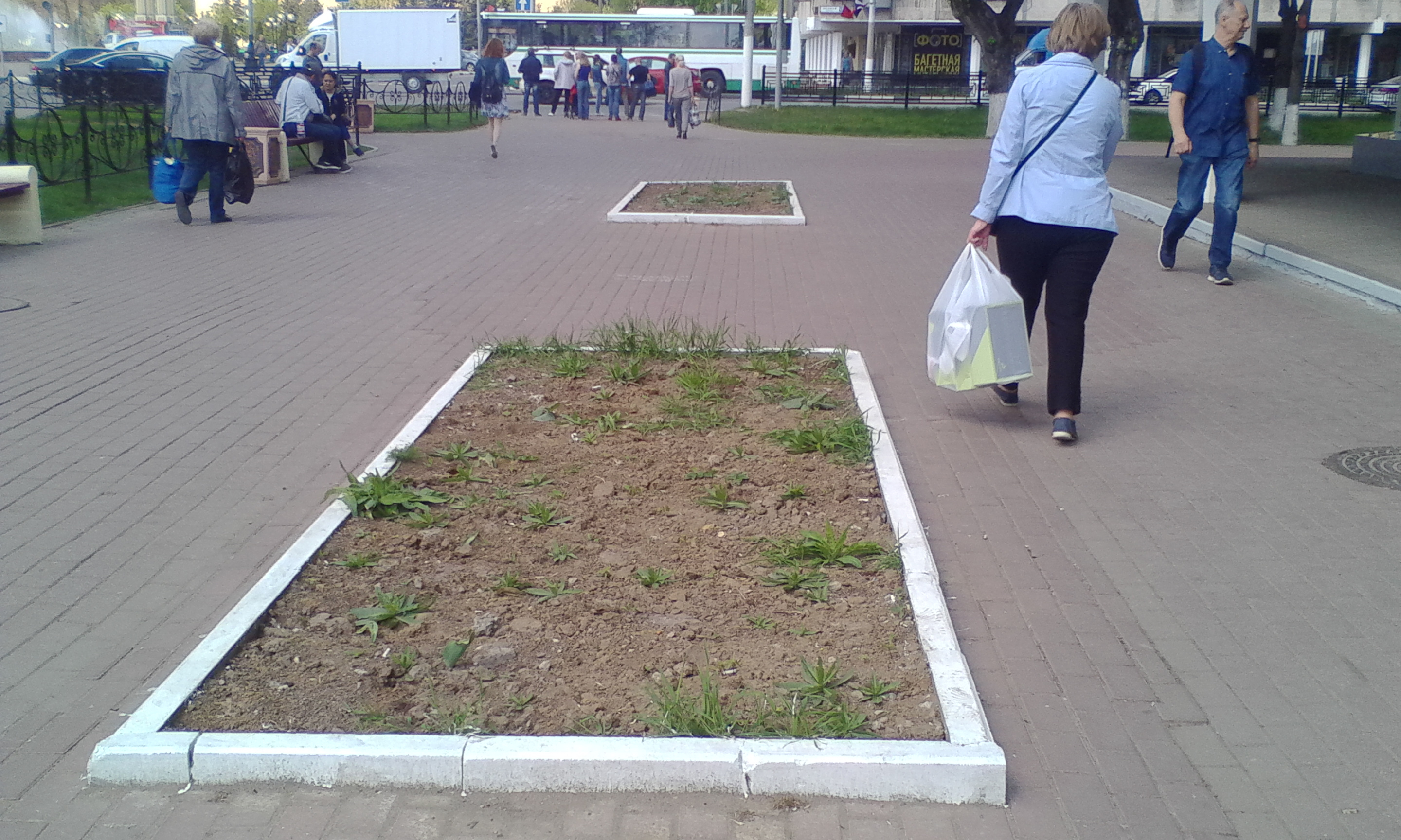 "Рестораторы" на Советской сажают цветы под убитыми кронированием деревьями.
