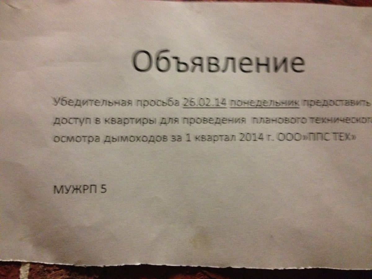 (при том что объяву вывесили в среду днём)