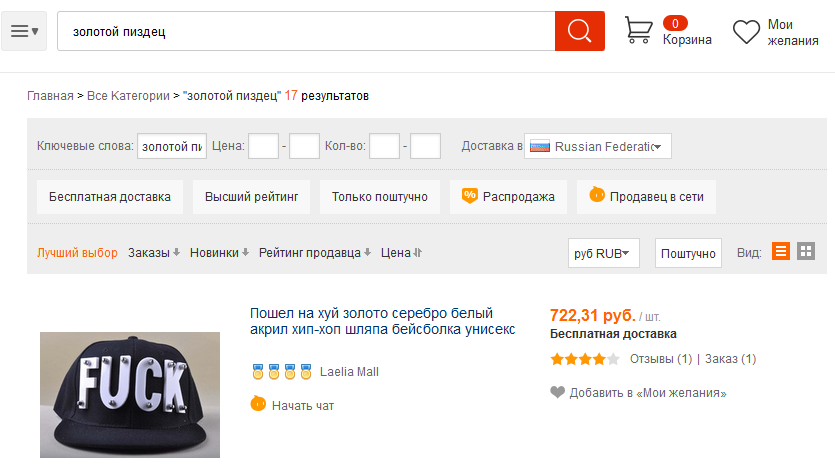 пишут: Если товар не соответствует описанию, вы можете вернуть товар, оплатив стоимость обратной пересылки, или оставить товар себе и договориться о компенсации с продавцомZaxarov писал(а):Во, я нашёл тоже )))http://ru.aliexpress.com/item/Golden-Ba ... 43890.html
