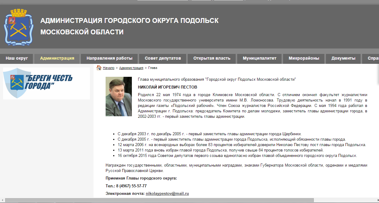 В отличие от admpodolsk.ru, домен которого зарегистрирован на Podolsk city Administration