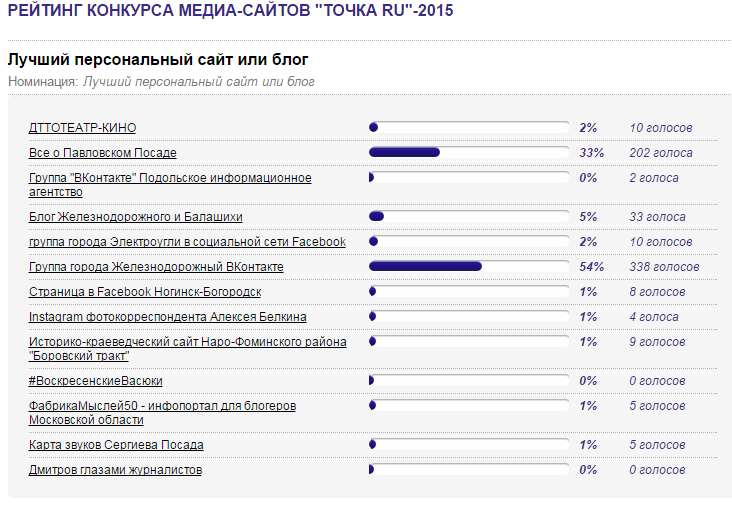 http://sojp.ru/projects/contests/polls/polls_55.htmlСоюз журналистов Подмосковья назвал победителей конкурса медиасайтов «Точка.РУ»
