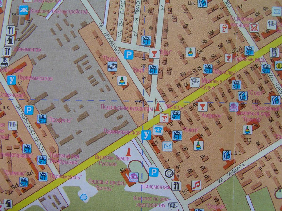 нужна подробная, в хорошем разрешении, карта подольска, а точнее хотя бы его центральной части в районе пушки. желательно с отмеченными домами, дорогами и улицами.