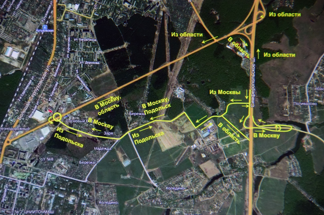 От пересечения южного обхода с Сосновой, где тоннель сейчас делают, в сторону Коледино и на Климовск. Жители Климовска могли бы заехать в город минуя глобусовский круг.
