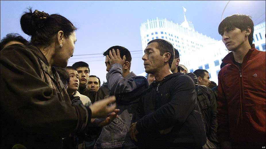 bbcСобытия в Оше вызвали тревогу среди узбеков, живущих в России. В Москве узбеки собрались у Дома правительства, высказав свой протест против происходящего.
