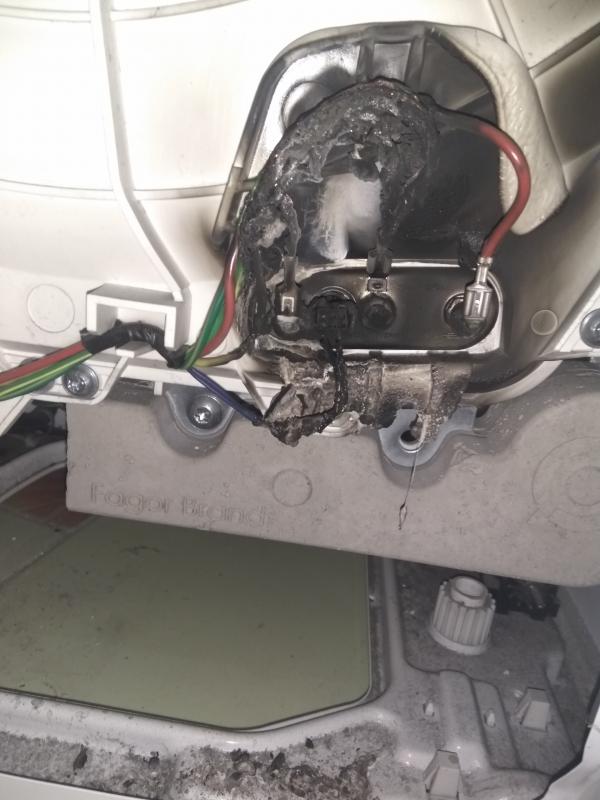 А ведь банально сгорел тен, расходник, но почему так замкнуло хз. И раньше тены горели на других машинках, просто переставал греть, меняли и все. А тут бабахнуло