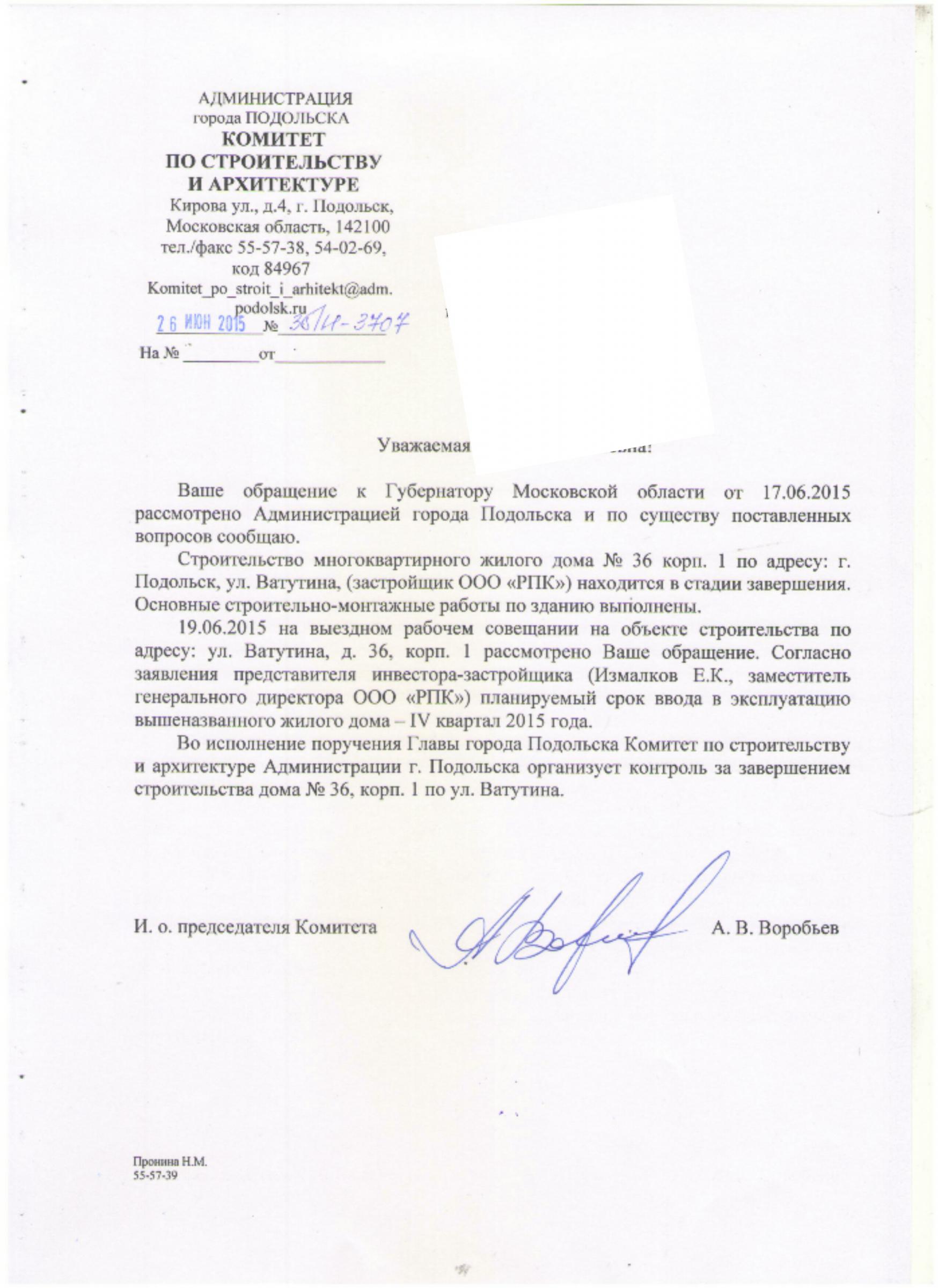 А вообще как то все странно, Воробьев отписывается и пишет, что в 4 квартале 15 года дом в эксплуатацию сдадут, а РПК 15 июля перезвоните, все как то очень загадочно! или 15.07.15 скажут приблизительную дату ввода дома в эксплуатацию? короче столько вопросов и ни одного ответа!