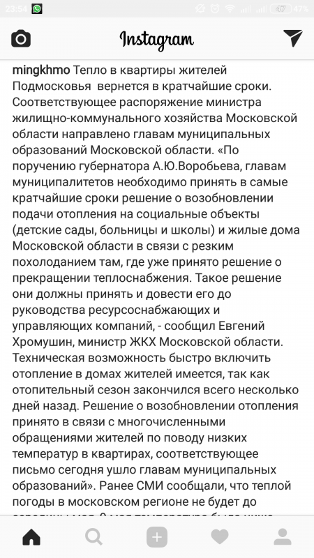 Поразило, что в Москве включили отопление по просьбам населения - батареи сейчас горячие. В Подольске как сейчас с этим? :?