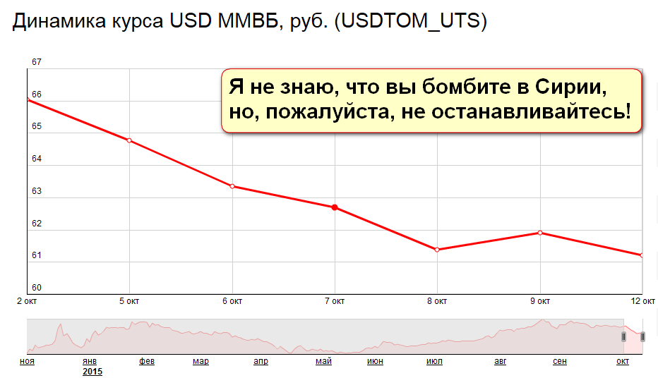 Так на бирже сидят телек смотрят. Увидели новости, ааааа сбили, русских слили, и давай закупаться, потом опровержение, все в шоке и давай скидывать сноваZaxarov писал(а):16-10-2015 02:48