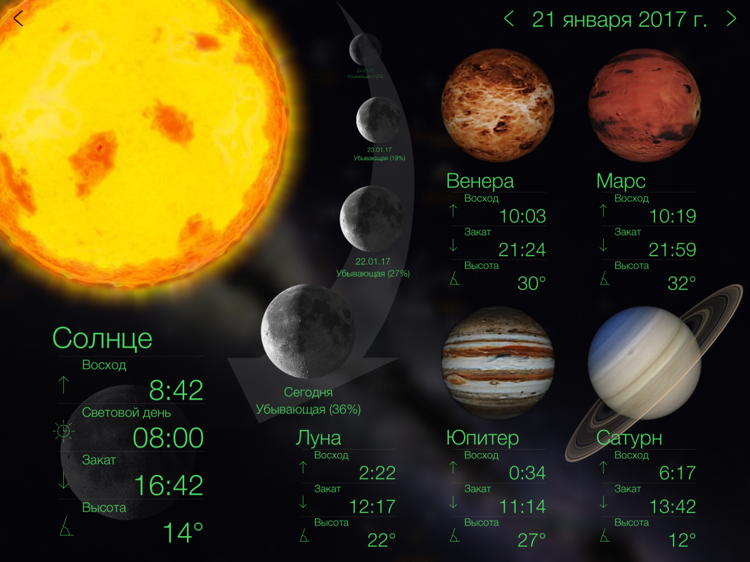 у него 20-го, у меня 21-го, сегодня не видно из-за облачности, но смотрим текущее состояние неба в данной конкретной точке, сегодня 23.01:летучка писал(а):Puhnastik