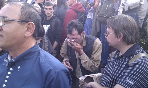 Акурат промежду юриной речью и негодуэ,несогласный народ от скуки учинил промеж собой мордобой.Развлеклись от души,в итоге какой-то ЕРЖ(вероятно,нашисткий провокатор) получил по сопатке: