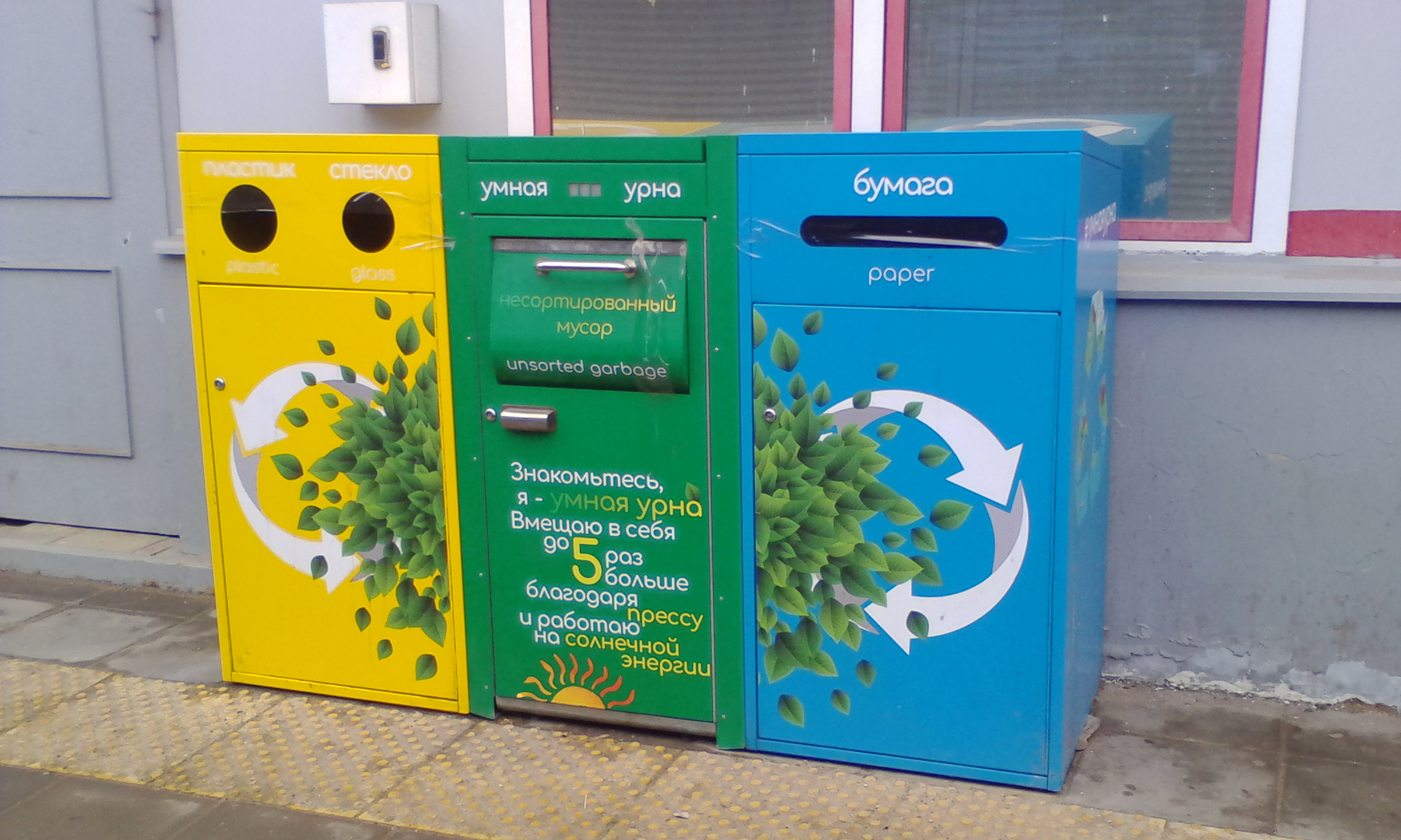 На станции Подольск в декабре установили умные урны. Внутри них пресс, который работает от солнечных батарей.