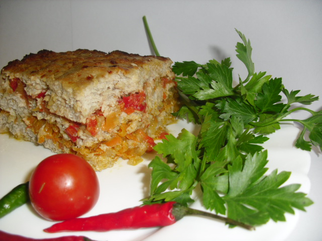 Начинка : слегка пассируем лук репчатый , перец болгарский , помидоры , морковь , соль, перец .
