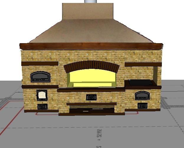 Всех приветствую.Печной комплекс явно нарисован дизайнером беседок.Как будете готовить в казане когда готовите в мангале,сажа падающая из дымосборника в казан тоже не здорово,по перекрытию портала много вопросов.Лучше разъединить,сделав полноценный мангал и нормальный казан на свою вытяжку.Ну и на такую длину беседки можно и по интересней по функционалу комплекс придумать,вписав ее в интерьер беседки.Приеду с отпуска пообщаемся,если будет интересно.