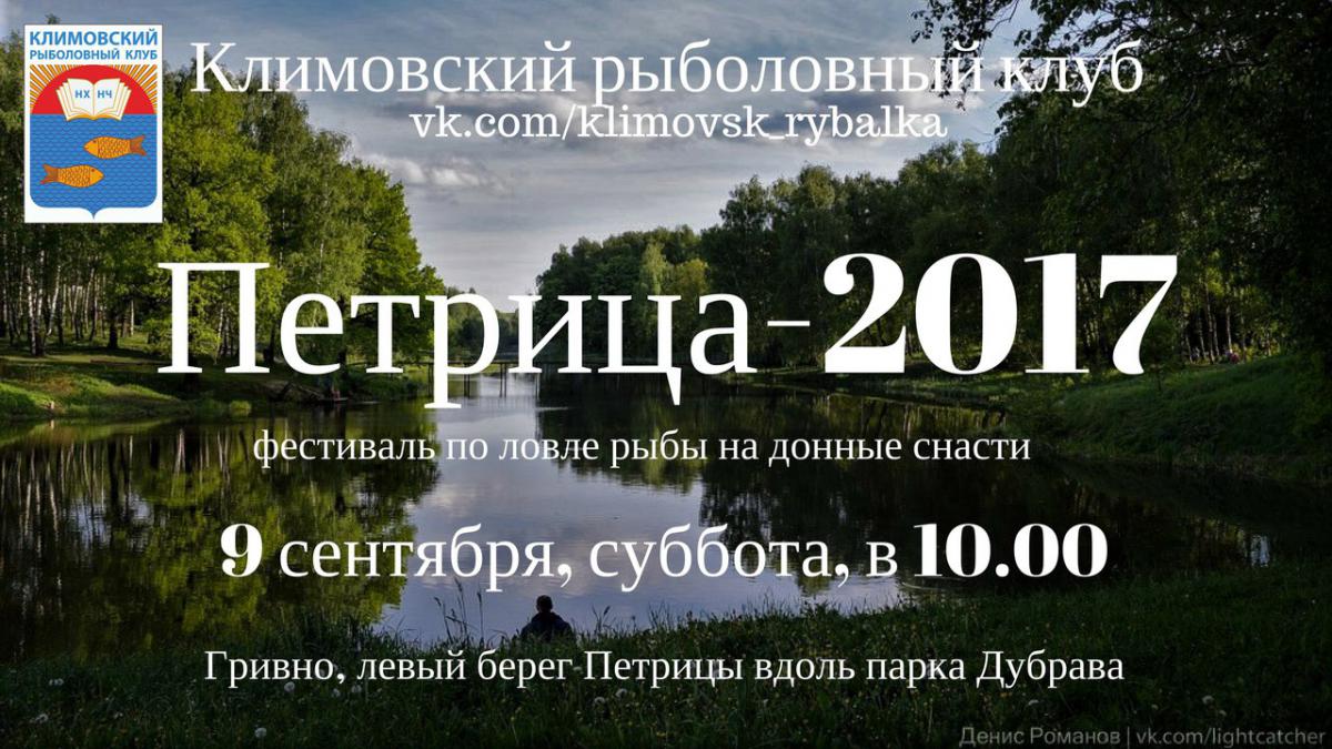 9 сентября Климовский рыболовный клуб проводит фестиваль по ловле рыбы на донные снасти "Петрица-2017".