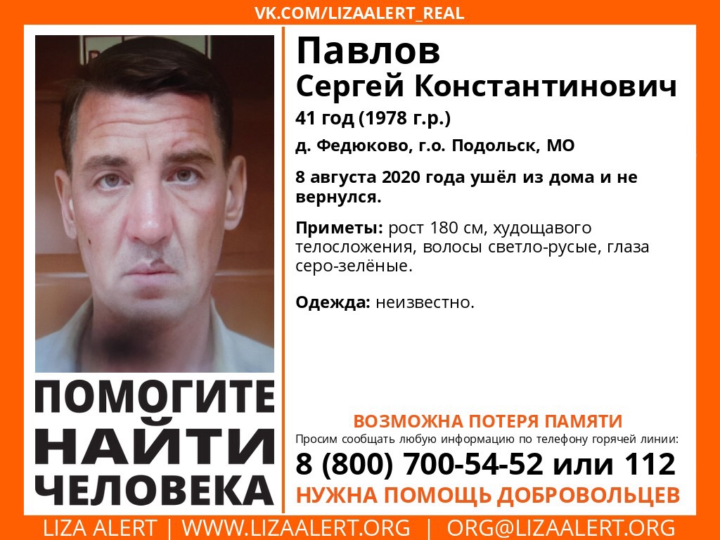 Здравствуйте! Пропал мой брат Павлов Сергей Константинович 13.12.1978г рождения.
