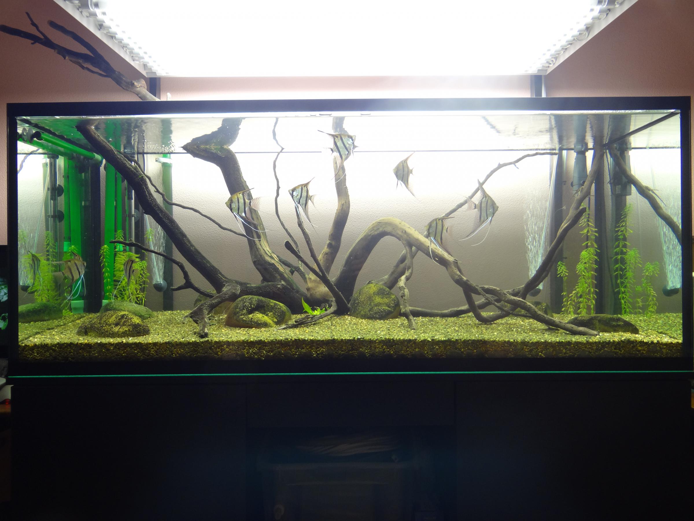 думаю на счет света для аквариума. Сам аквариум будет без крышки, хочу светильник Т8 прикрутить к стене (на "г" уголок) на высоте 20см над аквариумом.