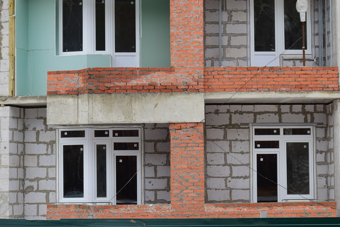 В доме №17 практически закончили выкладывать наружные стены фасада.