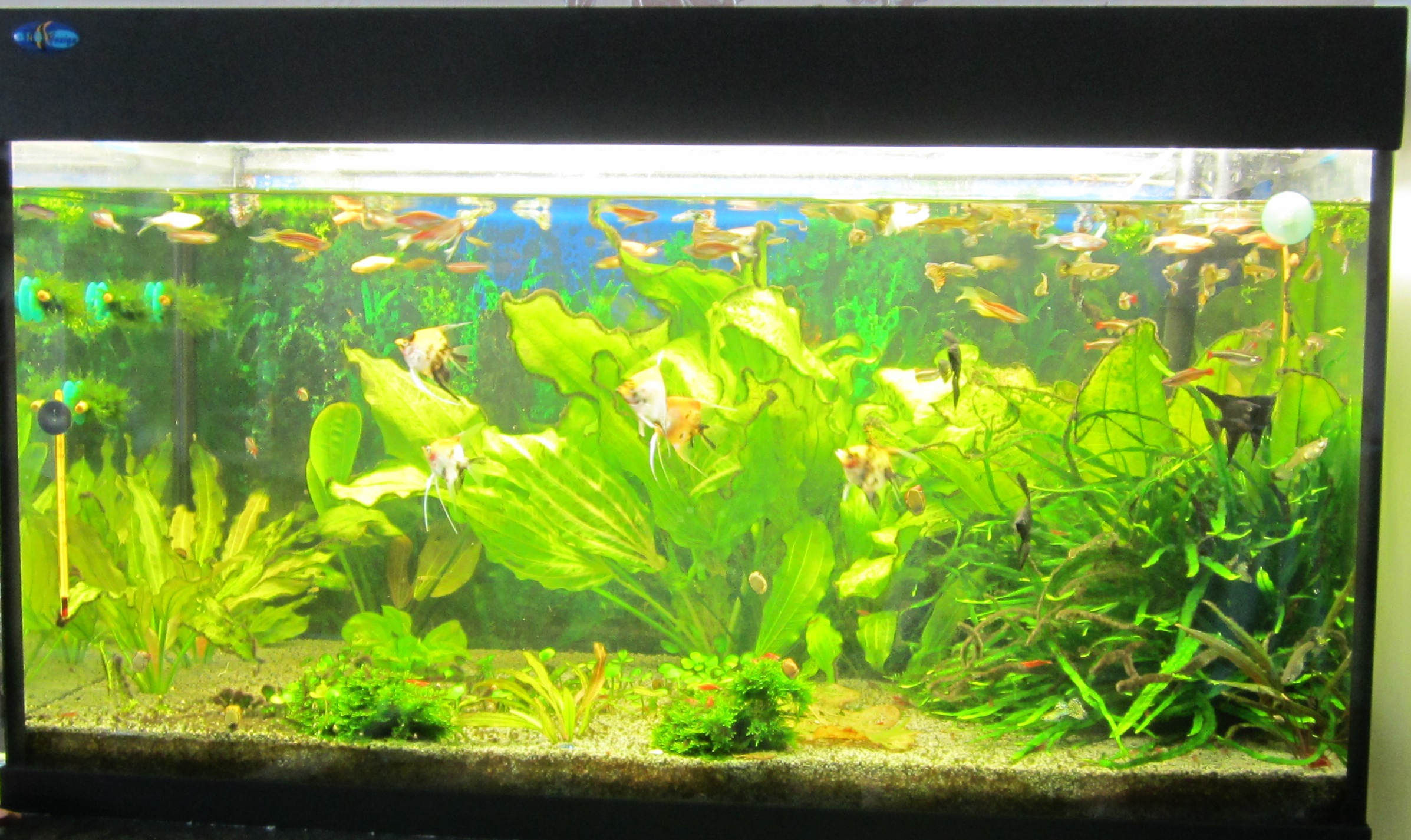 На этот аквариум я МГ вообще не рассматриваю, потому что в нем даже люминесцентные лампы без отражателей легко пробивают столб воды: