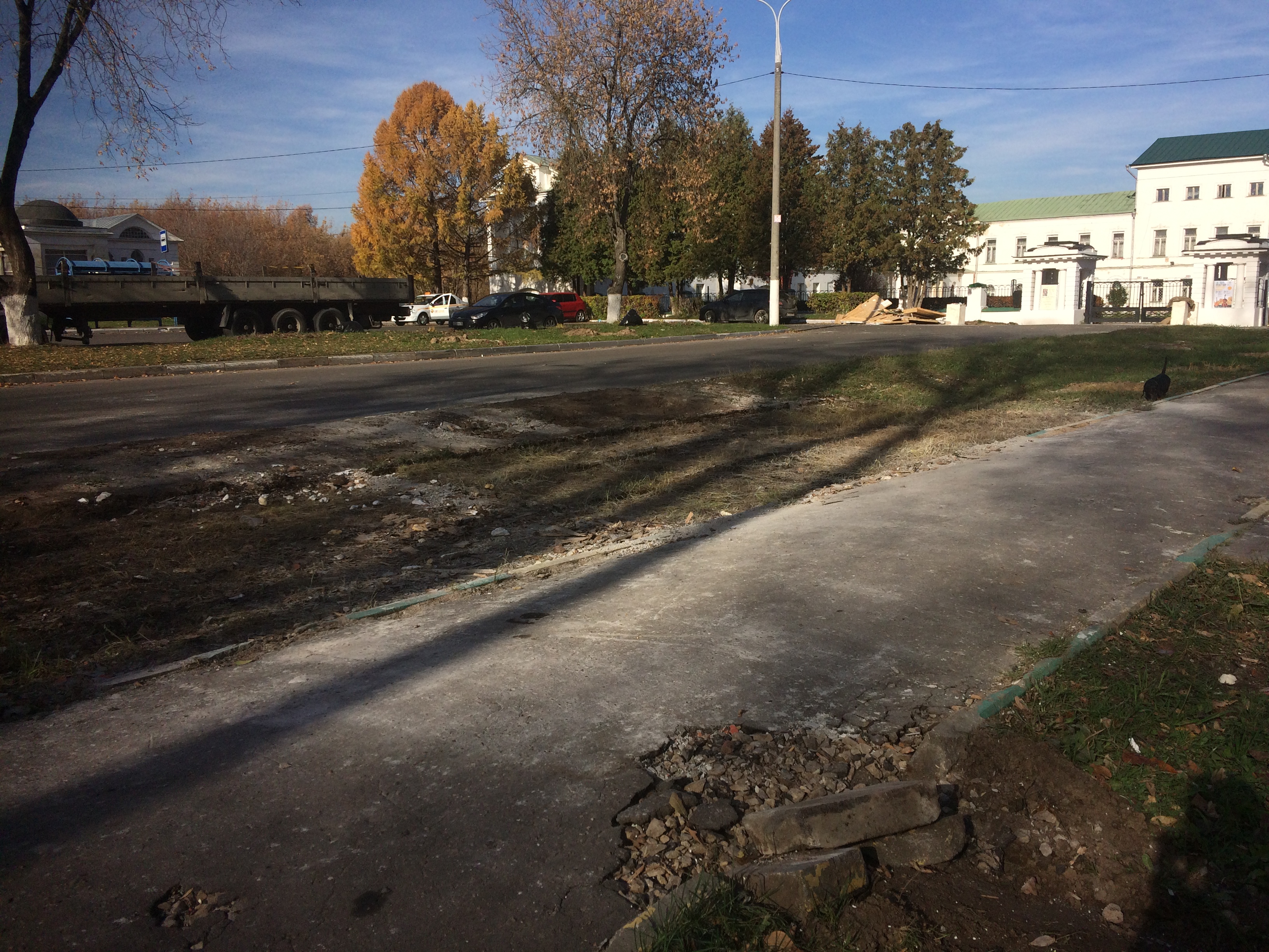 Там какая-то движуха началась, на газоне кучи земли какие-то, не рассмотрел толком...