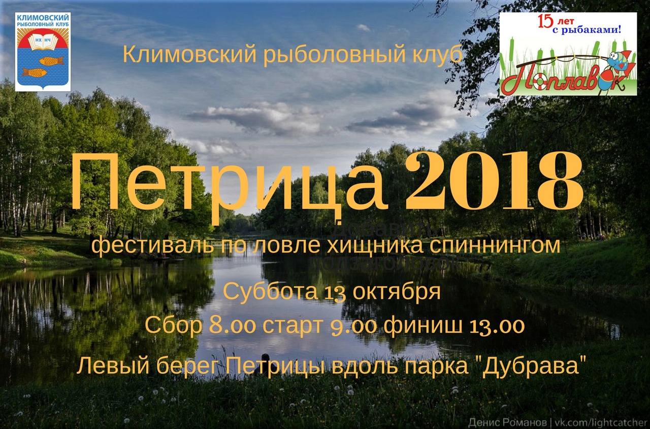 В субботу, 13 октября, Климовский рыболовный клуб проводит фестиваль по ловле хищника спиннингом "Петрица-2018".