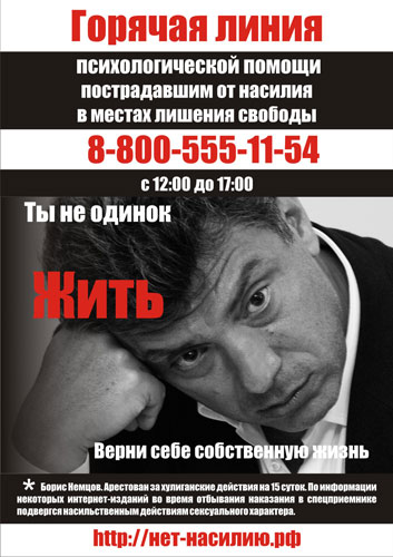 http://b-nemtsov.livejournal.com/97690.htmlГренадер писал(а):Сегодня путинские петушки (кто-то из так называемых молодежных движений, типа, "Наши", "Молодая гвардия", "Сталь" и прочая шваль) развешивали по всей Москве плакаты о том, что я якобы подвергся сексуальному насилию, и они готовы оказать мне содействие. Как обычно, петушки выдают желаемое ими за действительное.