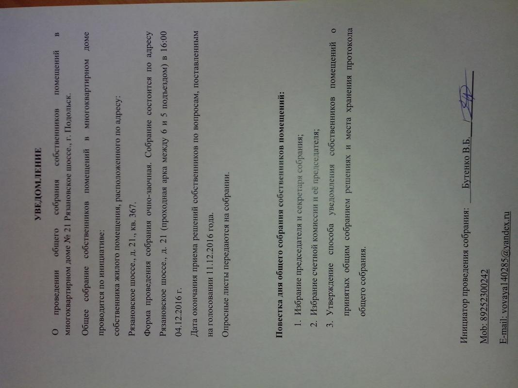 Уведомление во вложении! Всем желающим ознакомиться и внести корректировки и предложения, может есть кто юридически грамотный!? Первое собрание лучше провести в предстоящее воскресение 6-го скажем в 16:00 достаточно по одному собственнику из каждого подъезда для распространения, я из 6-го! Ну а далее с инициативными людьми всегда можно разработать план прорыва!