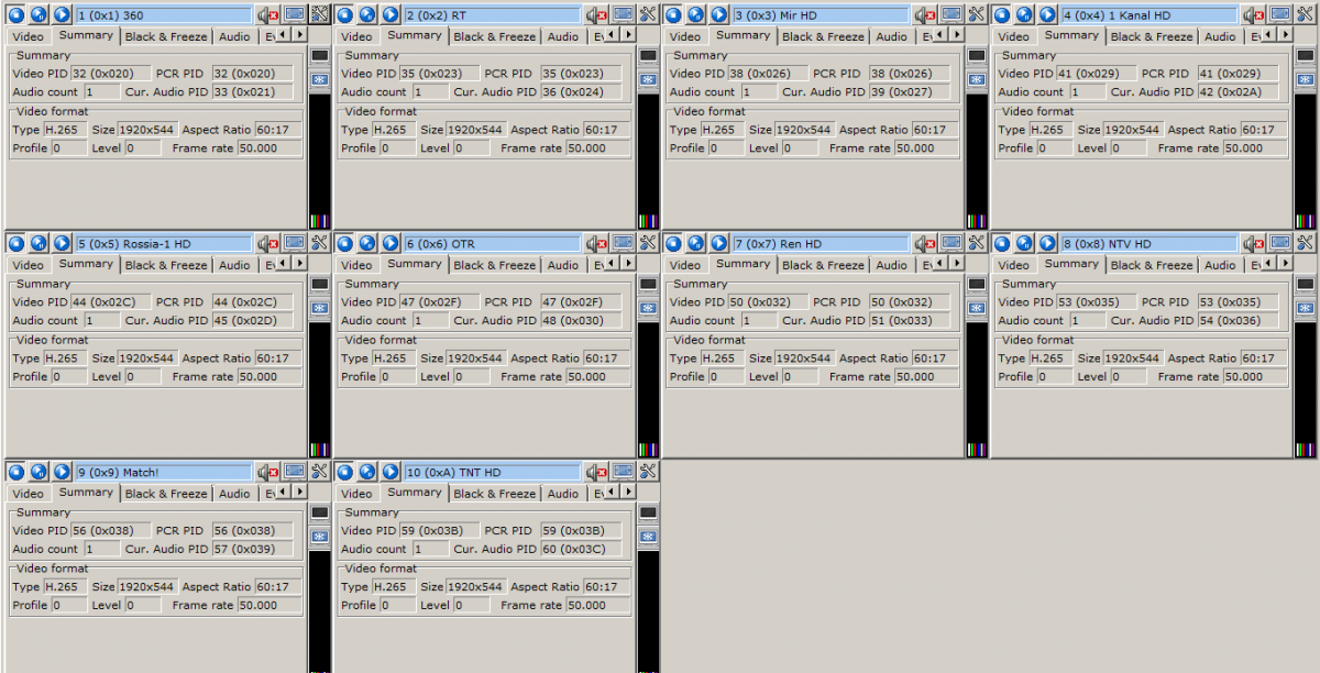 из скриншотов представлены каналы, 35-60, ТВК35 представлен от 2 передатчиков: Останкино и Ходынское поле ул.