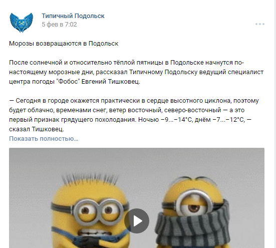 "Меня в "Типичном Подольске" заблокировали за то, что я им указал в их ошибке. Они написали, что мультфильму Винни-Пух исполнилось 90 лет, когда не мультфильму, а самому герою исполнилось 90 лет. Мультфильм же вышел в 1969 году. Вот так ТП превращает людей в ТП."