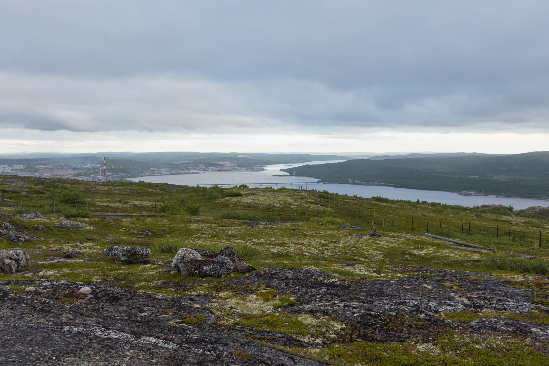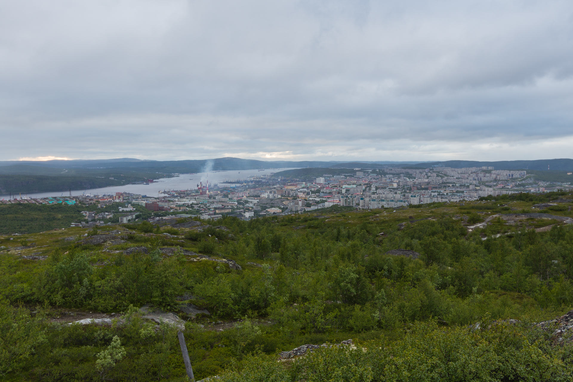 Мурманск. Виды с Горелой горки. За бортом +4. Ветер северный, порывистый, сильный. Мелкий дождь. На календаре 6 июля.