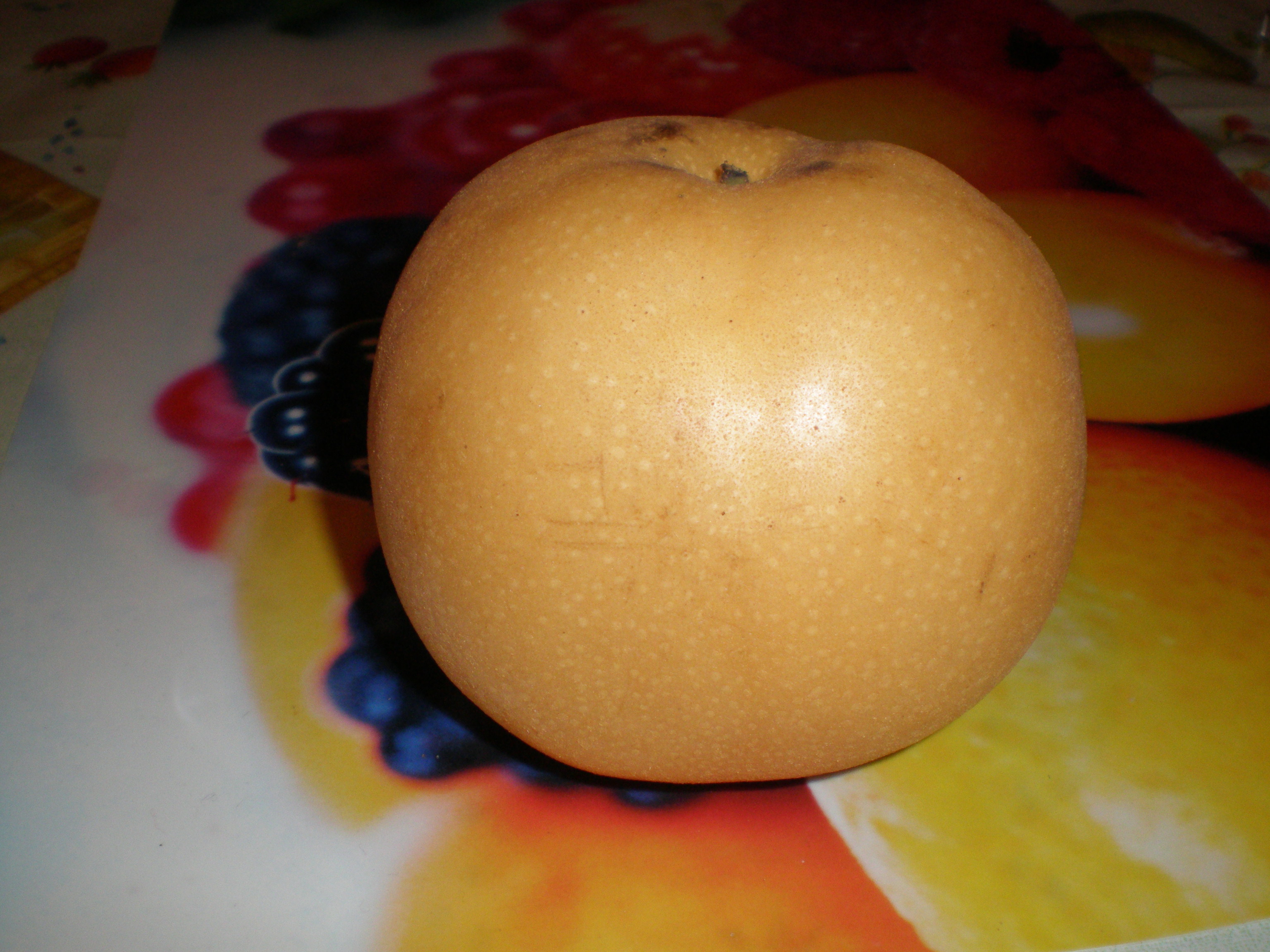 Выглядит как яблоко, а остальное роли не играет. Может и айва, может и парафиновый муляж яблока. Также, может быть это выточено из стали, дерева, слеплено из теста и т.д.