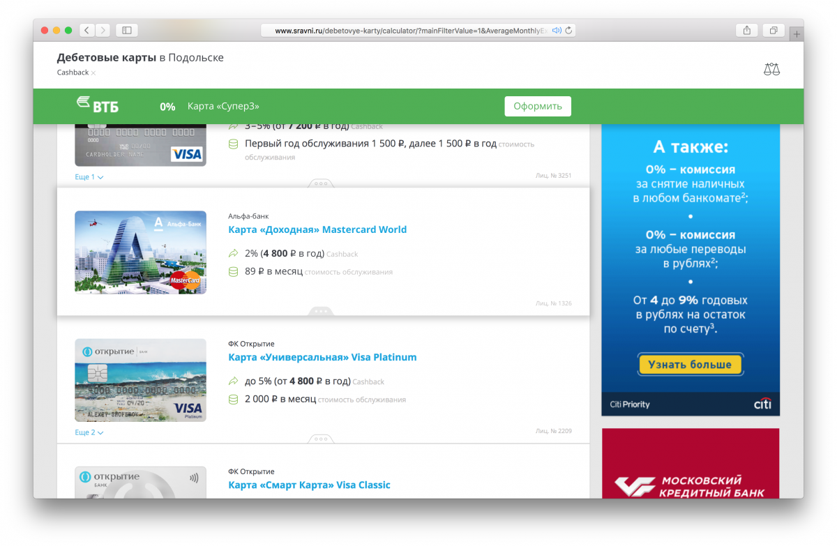 По поводу карт с кэшбеком.
