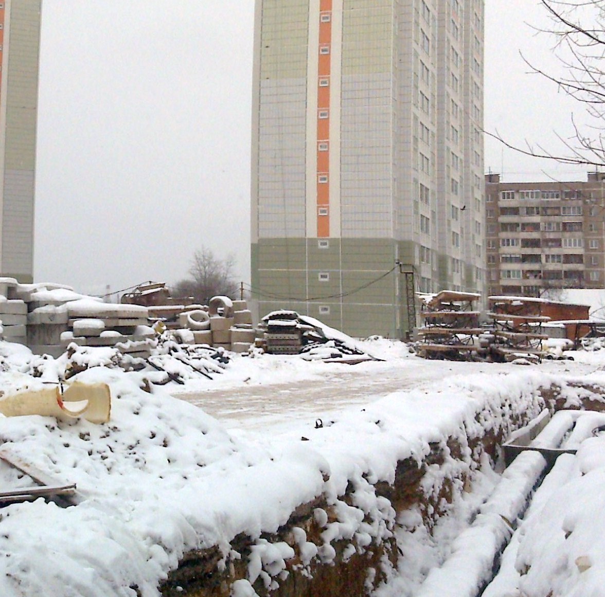 На стройплощадке полный разгром, ну думаю, облагораживать будут весной, когда будет тепло.