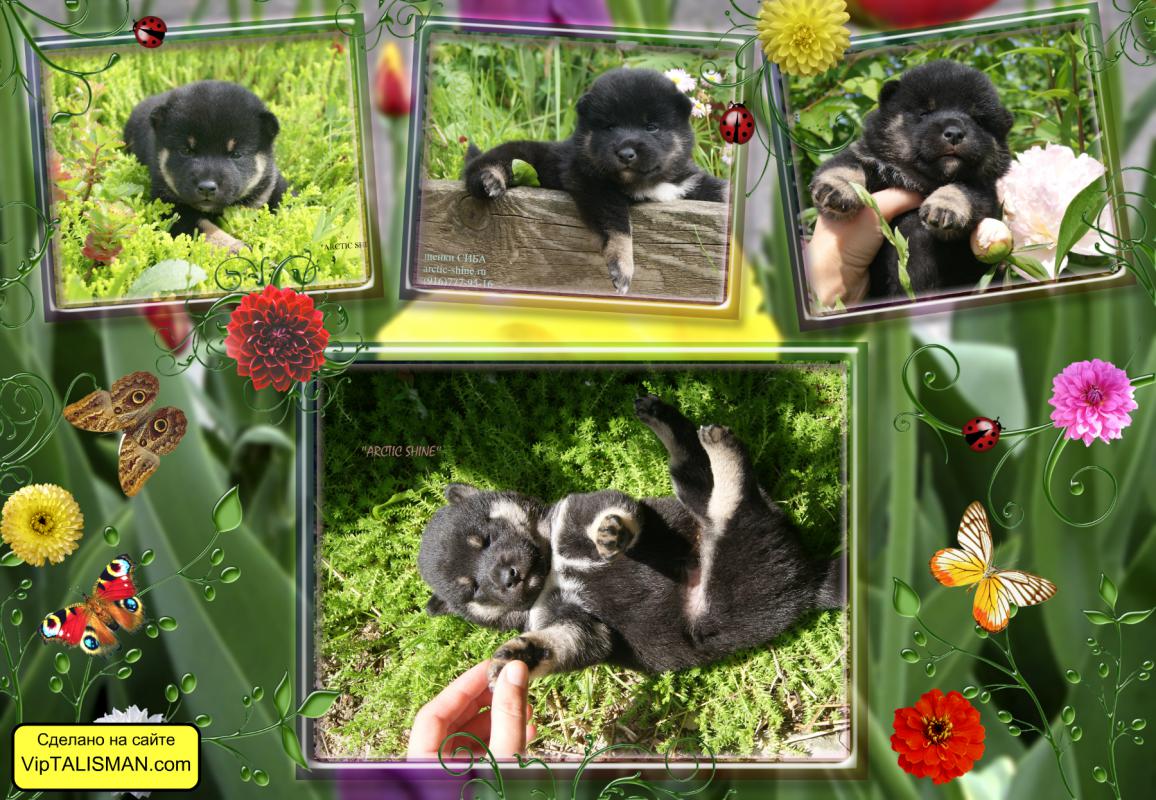 Щенкам почти месяц Уже вовсю бегают, начали есть сухой размоченный корм, выходят из гнезда писать на пеленку . Активно знакомятся с внешним мирок, ведь кругом так много интересного! Можно пообщаться с детьми и поиграть с ними, погонять кота мэйкуна, который живет в доме, пообщаться через заграждение с взрослым кобелем сиба. И конечно обследовать дом и послушать что делается на улице.
