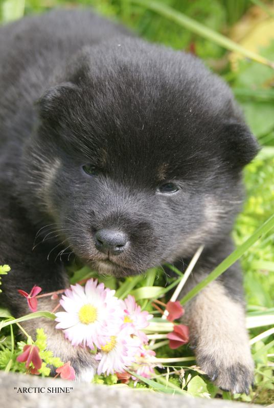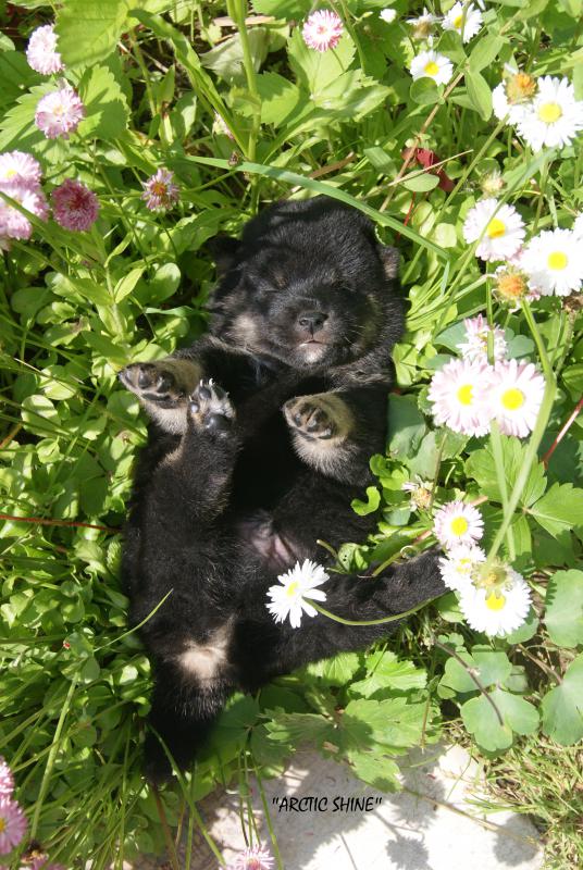 Все дети унаследовали папину супер-голову и взгляд , массу обаяния и улыбчивости, мамы-папины крепкие ножки с хорошими углами ЗК , длинный пушистый хвост, маленькие породные стоящие торчком ушки, добротную шубку.