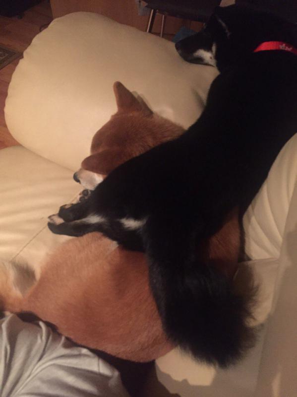 вот такая сиба-кото семейка. Если щенки вместо ГАВ скажут МЯУ я не удивлюсь!