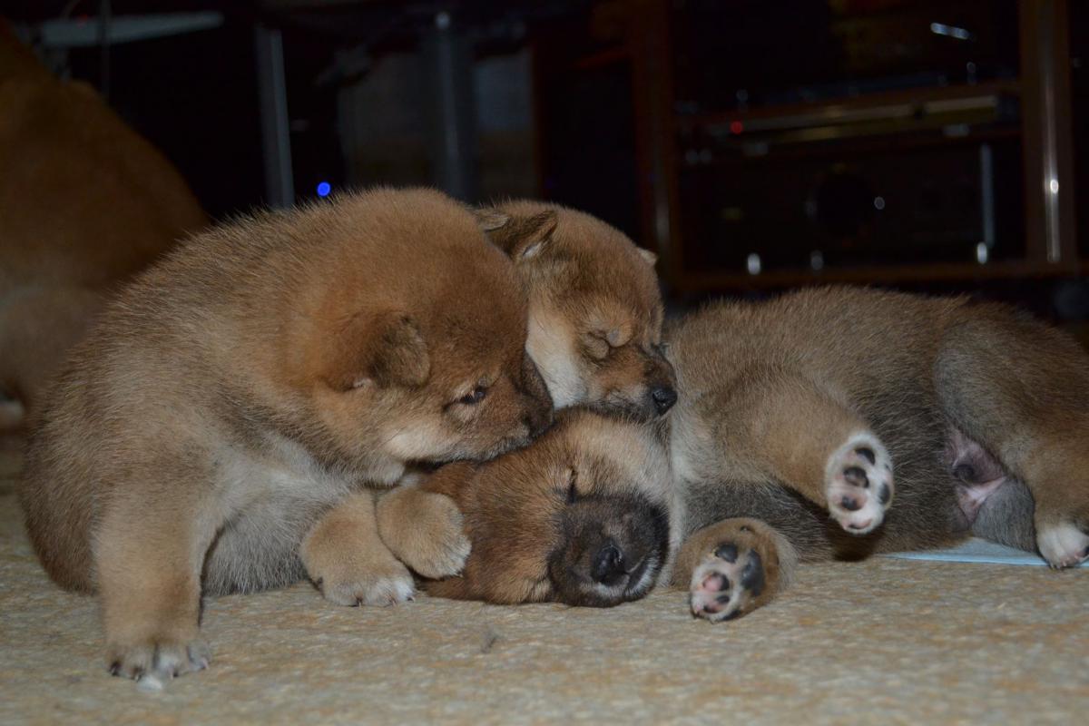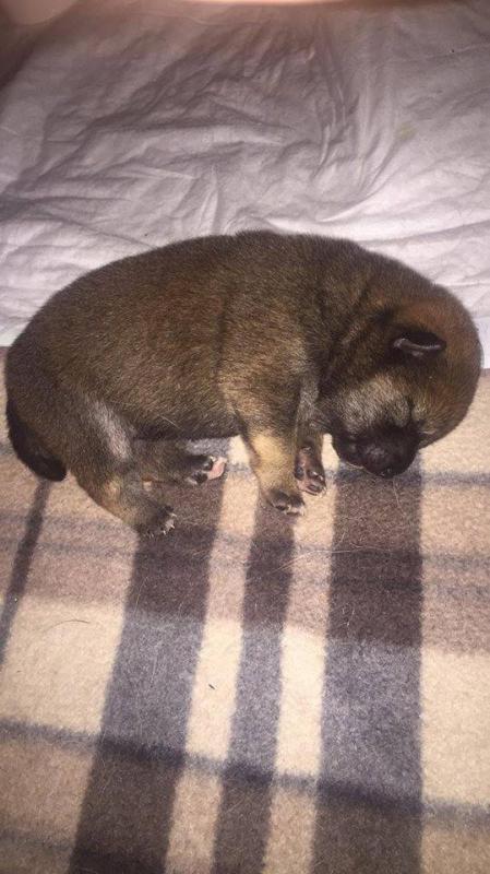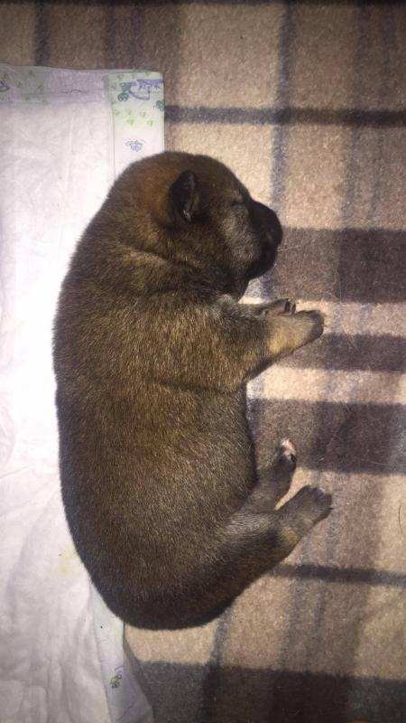 по окрасу будут скорее всего как Шант , красный (рыжий) сезам. Мама Шойка мужественно родила этих богатырей- 270 и 300 гр , для щенков сиба -это очень приличный вес. Дети активные -сразу запищали и присосались, как пиявочки.