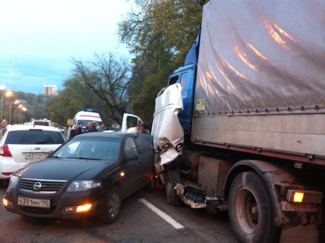 Под фурой на трассе м4, причем не лобовое, а фуру занесло и он въехал ей в бок.