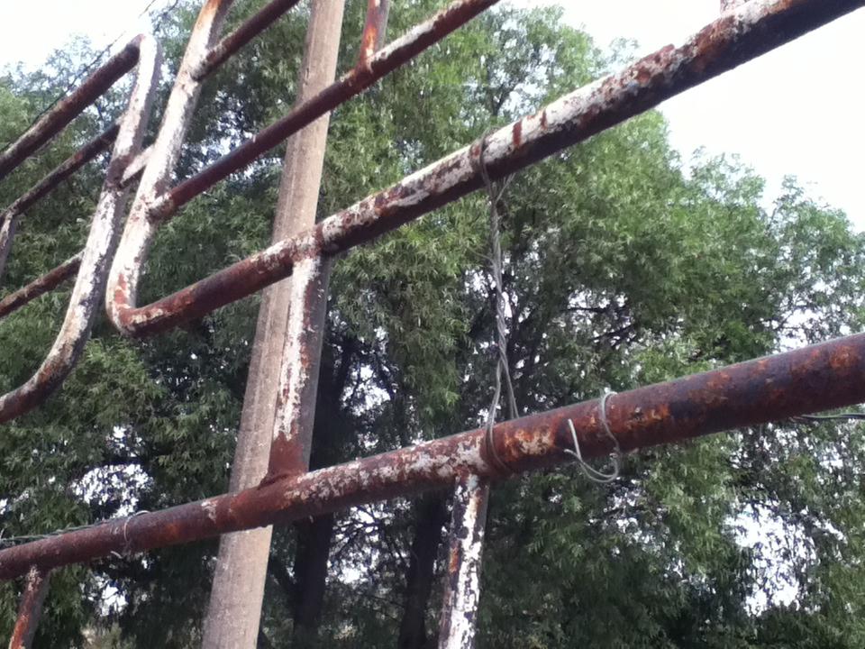 А железные штуковины, оставшиеся от прежних установок на детских площадках - повсеместно, увы.