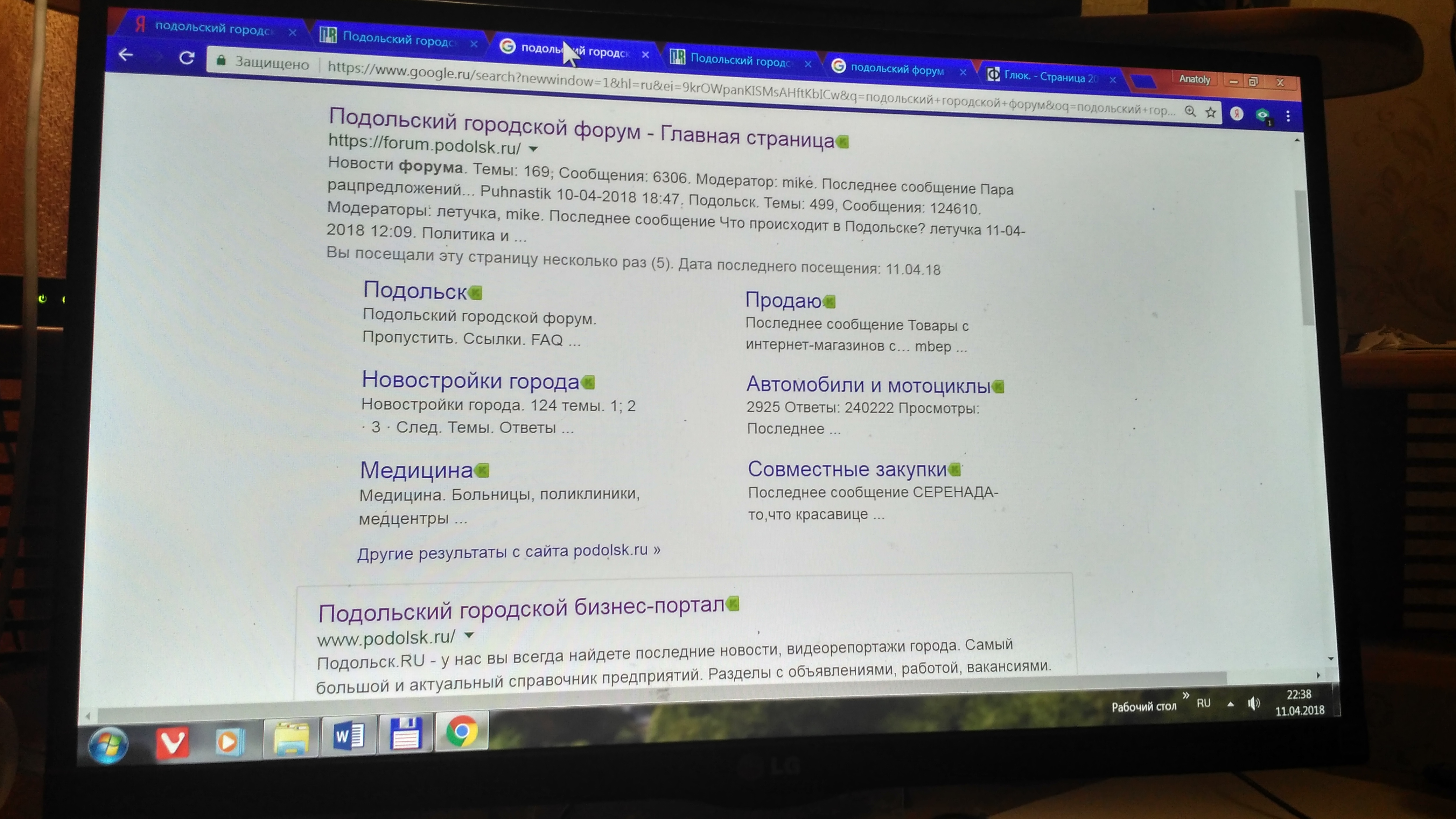 При запросе в Яндексе "Подольский городской форум" (помимо ссылок не относящихся к данному сайту) выдал в первой строке вышеозначенную ссылку, по которой загружается сайт Podolsk.ru, второй строкой выдал ссылку на страницу моего личного кабинета, четвертой строкой выдал ссылку на страницу с поиском слова Армии в этом форуме.