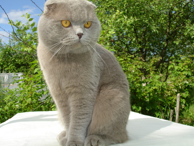 1) Шотландского вислоухого. Окрас - голубой мрамор. Отличный двойной залом ушей. Прекрасный характер. Развязан. Проверен по потомству. Отличная родословная. Приглашает шотландских прямоухих (страйтов) и британских кошечек.