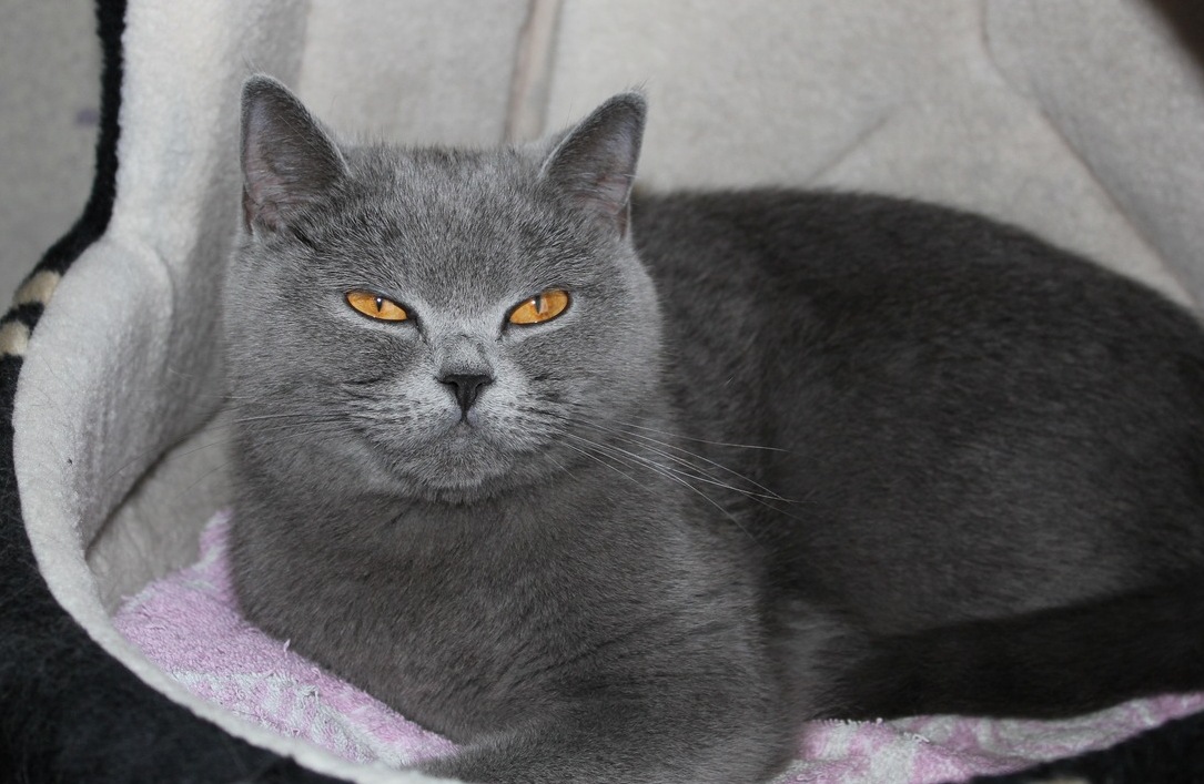 Британская кошечка голубого окраса, не развязанная, без родословной ищет котика для вязки. (Очень страдает. :( )