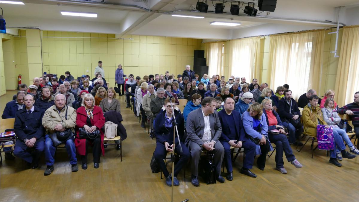 Народу вдоль стен было примерно столько же, сколько сидит на фотографии. Присутствовали собственники около 200 квартир. Правда Дунаева и компания уже корни пустили в этот дом, Администрация вместе с дольщиками пока еще далеки от победы. Но в целом план действий имеется и это радует.
