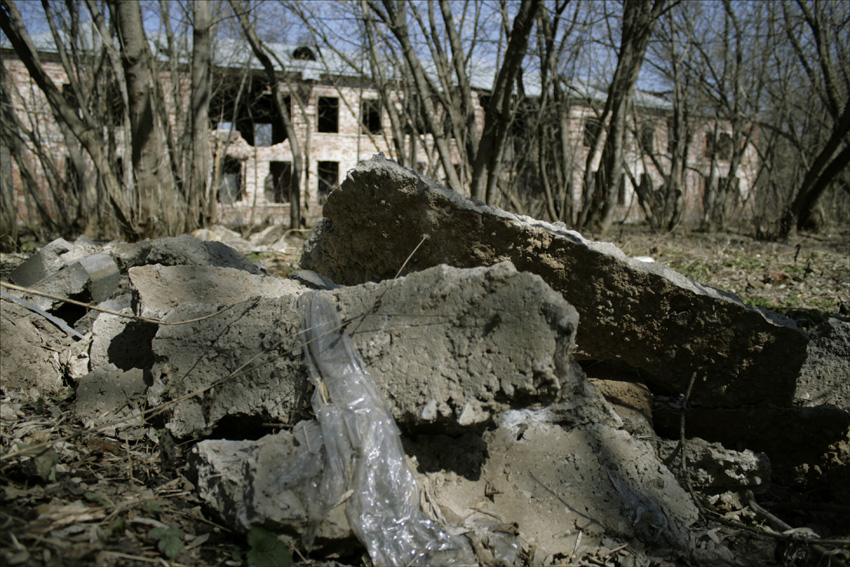 Территория не огорожена, сад и лесопарк запущен и засран. Внизу проходит трасса то ли очистных, то ли канализации и там тоже частично грунт уже провалился. Тоже надо что-то делать.