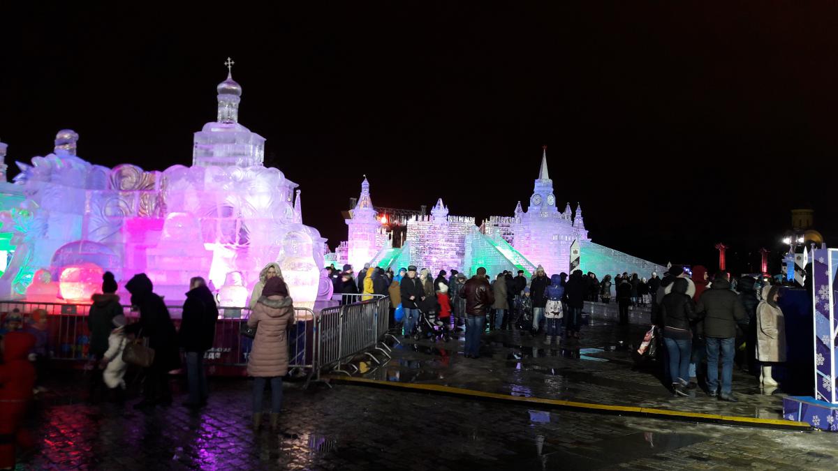 1 января facepalm: поехали на Поклонную гору смотреть ледяные скульптуры. народу на мкаде - тьма, на Кутузовском - тьма, парковаться у Поклонной горы негде. В парке практически все с детьми. В связи с аномальным потеплением горки не работают. Билеты на вход 250 от 5 до 14 и 350 - взрослые. Есть туалеты, перекусить - в основном хот-доги и горячие напитки. Пока суть-да-дело - вертеп работает (то бишь балаган с куклами спектакль сказочный показывает) и мини-представление на сцене. Вечером красиво, все скульптуры подсвечены, причём цвета меняются. Желательно иметь галоши или что-нить типа того, обширные лужи под ногами появляются внезапно (под ноги смотреть не комильфо, наоборот голову практиццки всё время задирать придётся )