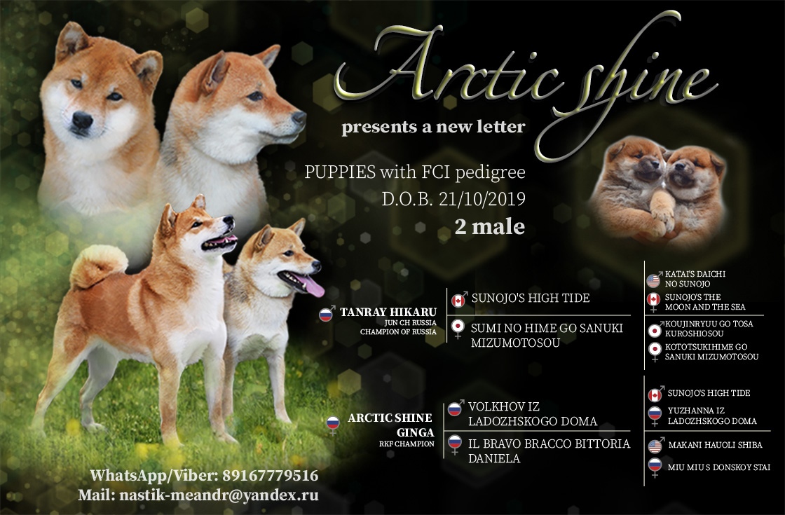 Питомник Арктик Шайн, является бесспорным фанатом черно-подпалых сиба-ину. Это уже 4 помет от двух ч/п производителей , который не дал на выходе белых щенков (Хотя ,признаюсь, очень хотелось!)