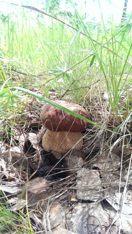 Нашла подберезовик и маленький белый. Лисичек нету и вообще одна трава кругом. Мокрая.
