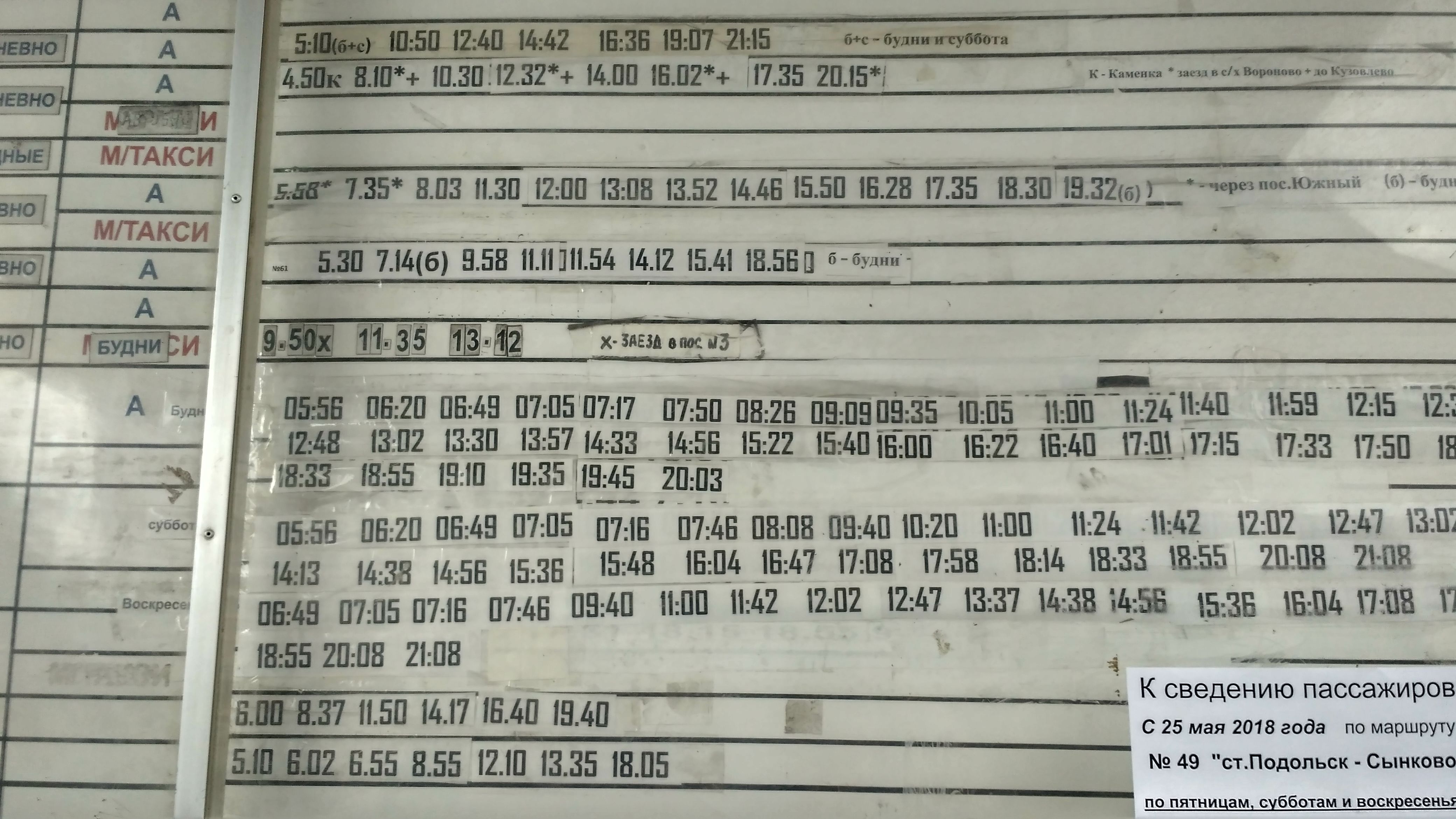 Ещё на ст. Подольск видел бумажку, прикрепленную к стойке с расписаниями, на которой напечатано о том, что по №49 добавлены рейсы по пятницам, субботам и воскресеньям в 8:10, 10:05, 15:45, 17:40.
