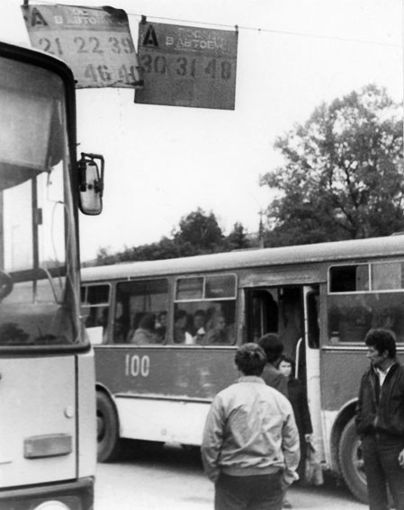 Скорее всего, я не знал, что заснятые автобусы (за исключением Экаруса) ещё продолжали обслуживать маршруты в период, когда на маршрутах уже появились 677-е ЛИАЗы (на первом фото слева заснята часть ЛИАЗа, на фото за 1983 год стоит на посадке с бортовым номером 100).
