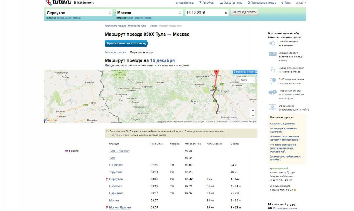 Расписание движения поезда № 7047, МОСКВА КУРСКАЯ - ТУЛА 1 КУРСКАЯ