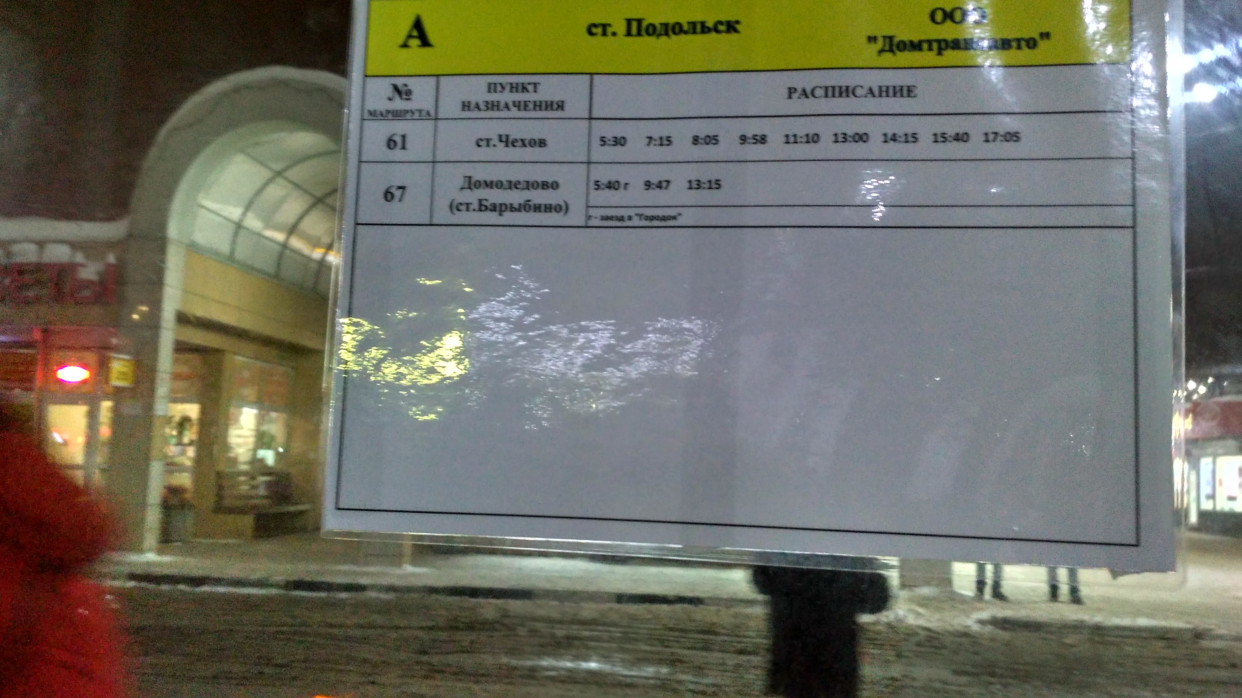 На ст. Подольск вывесили расписание Домтрансавтовских маршрутов (расписания висят на остановках).